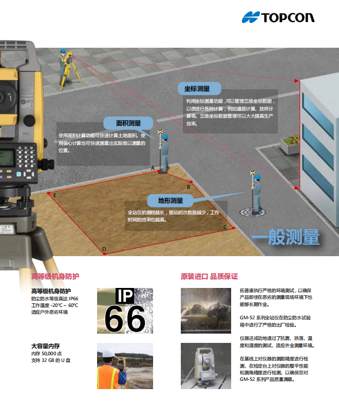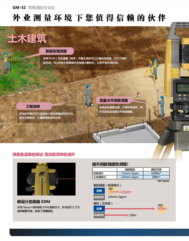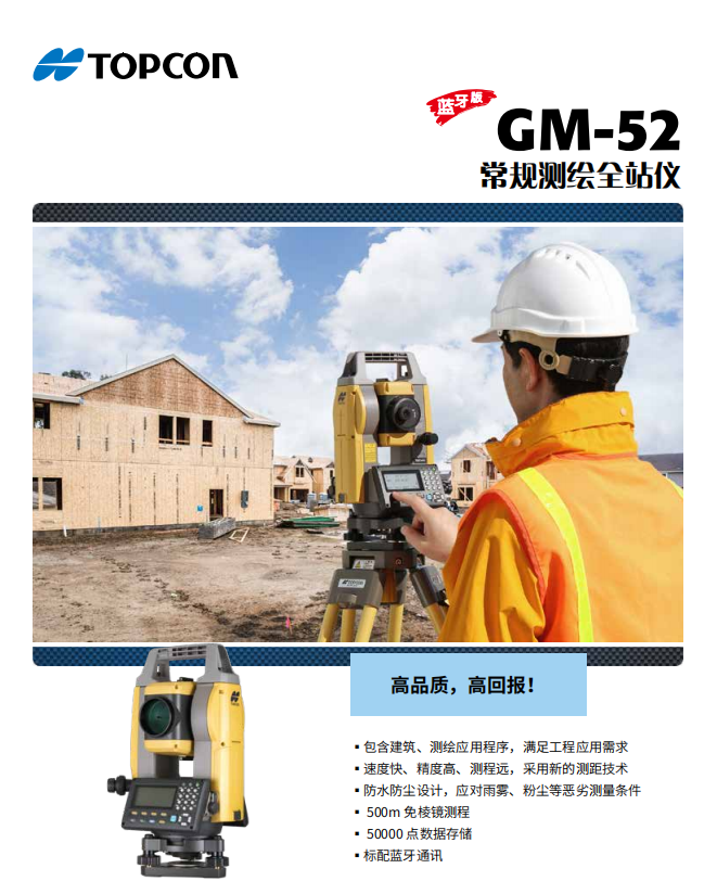 拓普康GM52全站儀延續拓普康測繪產品經典,功能齊全,穩定耐用,操作簡便高效,深受測繪用戶好評。